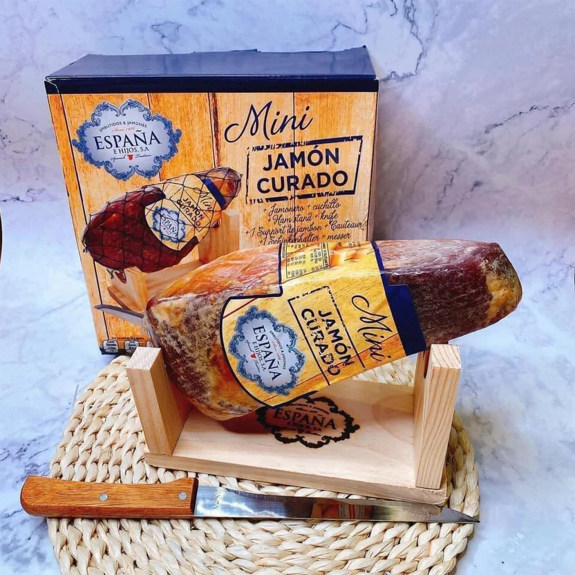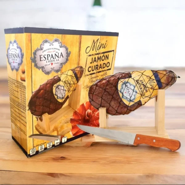 Lote Mini Jam??n Curado + Minijamonero + Cuchillo 1 jamon Espa?a.