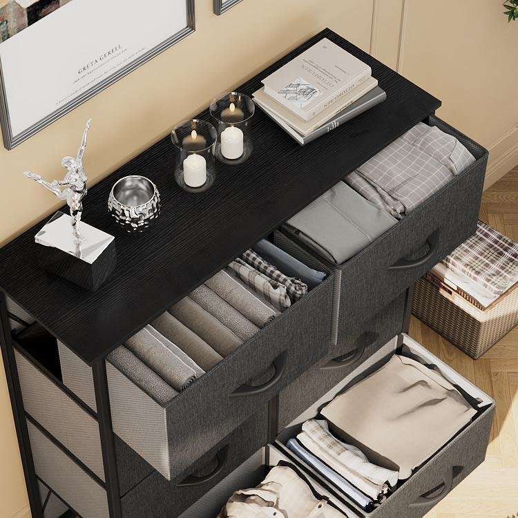 • QUALITY CONSTRUCTION- Made of reliable metal frame and durable MDF wooden top; 8 removable and foldable drawers; Easy pull fabric handles help conveniently open and close the drawers; 4 adjustable plastic feet help protect your floor from scratches